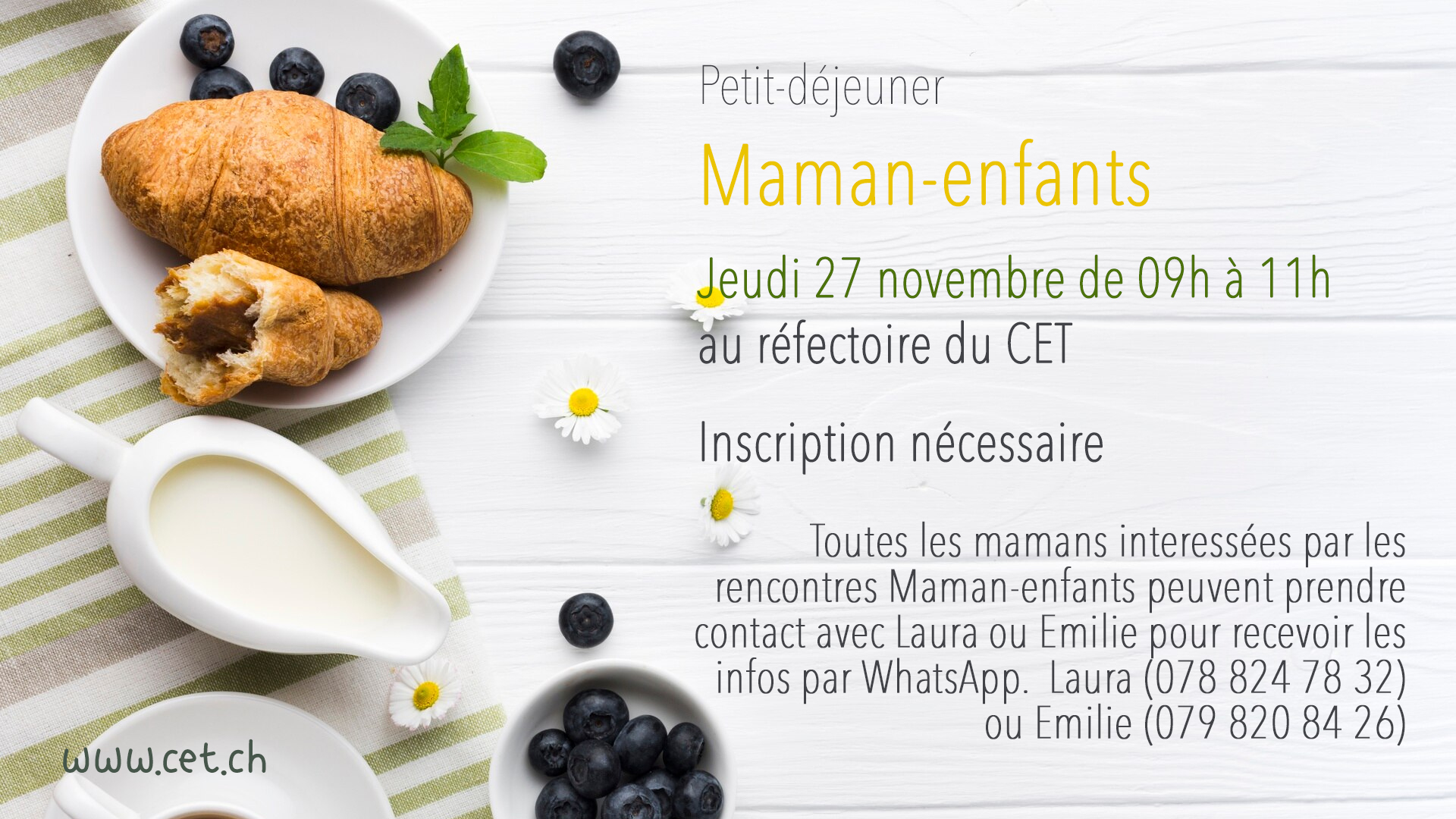 Inscription jusqu’au 16 novembre auprès de Damaris.